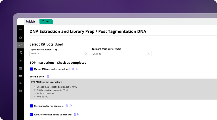 With Labbit’s flexible, no-code platform, labs can manage complex, evolving NGS workflows at scale—enabling rapid assay launches, continuous workflow adaptation, and high-performance operations while maintaining audit readiness.